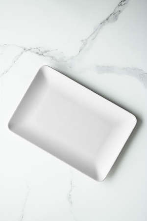 White empty plate on marble, flatlay - stylish tableware, romantic table decor and food menu concept. Serve the perfect dish