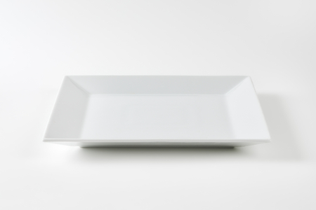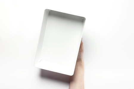 A clean and modern white tray stands out against a bright turquoise background, ideal for product photography, culinary presentations, or minimalistic designs.