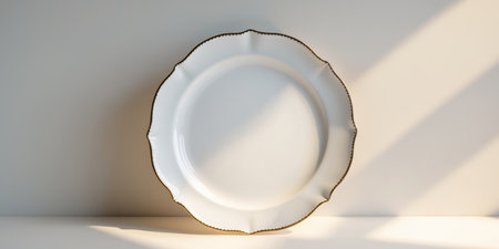 AI Generated. Elegant White Ceramic Plate with Scalloped Edge