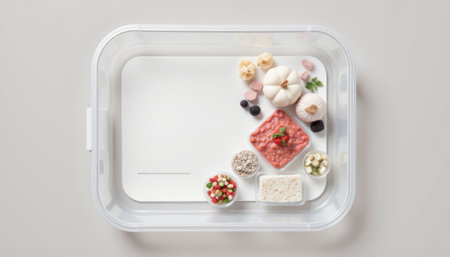 Customizable transparent food storage box with fresh ingredients, organization. generated by ai