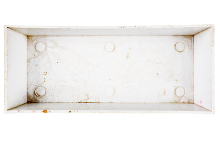 Geometric pattern, on a white background a gray grille. Large squares of the same size. Top view, daytime side lighting.