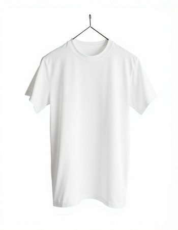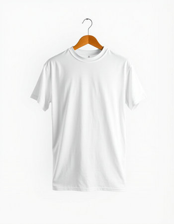 white t-shirt on wooden hanger. White tshirt mockup template. ai generated