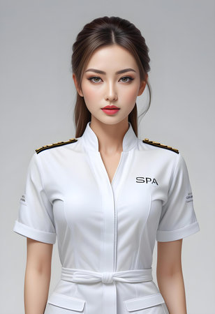 Alluring woman in elegant spa uniform, high quality portrait, isolated on a background