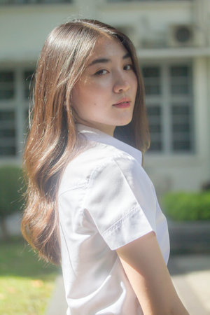 beautiful asian Thai college woman wearing university outfit, generative AI