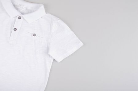 Textile, shirt composition on color background. Flat lay, layout and tabletop mockup with copy space.