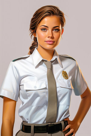 Portrait of a blond policewoman in full dress uniform. High quality illustration