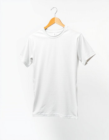 Minimalist plain white t-shirt folded neatly on a wooden surface, soft daylight casting gentle shadows, perfect for product presentation