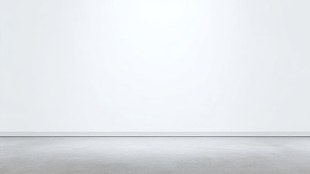 This image features a minimalist empty room with plain white walls and a concrete floor, providing a versatile backdrop for various creative projects and designs.