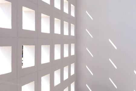 Shadows showing sunlight casting geometric shadows across a clean white wall creating a minimalist abstract background for projects. resolution...