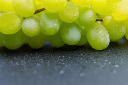 Bunches of white grapes with water drops, shallow depth of field, magic plastic and bokeh