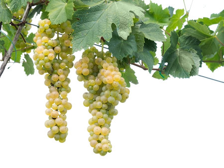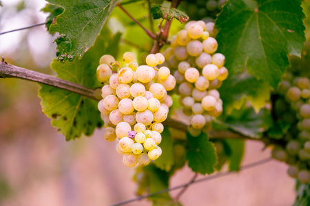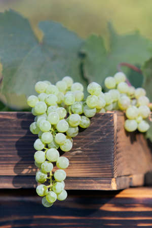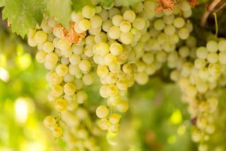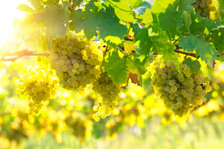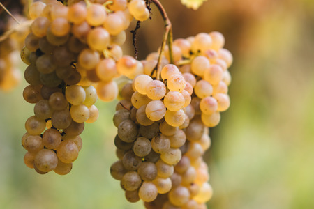 Ripe orgenic white wine grape in the vineyard ready to harvest and wine productuin