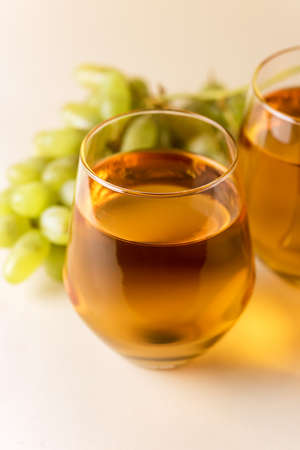 Glass of Tasty Grape Juice on Yellow Background Healthy Drink Raw Green Grape Vertical