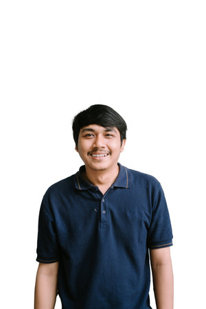 Portrait of Asian man smile on white background, Happiness carefree emotional expression concept, Chinese model