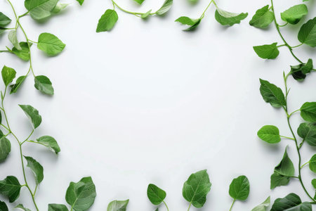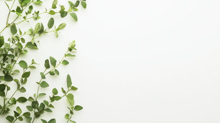 Fresh Green Sprigs Arranged on the Left against a White Background, Offering Ample Copy Space