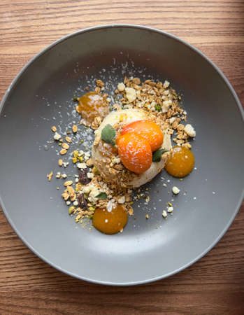 Desserts for the menu with decor. Restaurant dishes with a beautiful serving.