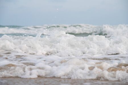 Waves on the beach as a background. Beautiful natural background at the summer time