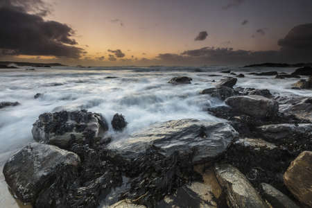 beautiful sunset over ocean in Newquay, Cornwall, UK