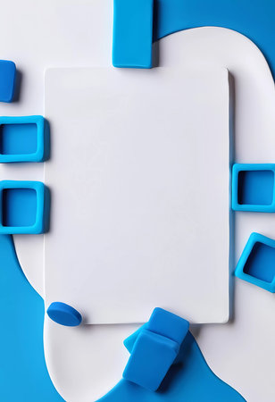 Bright blue and white abstract background showcases various play dough shapes surrounding an empty space ideal for artistic projects, crafts, or playful activities.