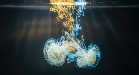 Abstract blue cloud of ink in water. Ink swirling in water.