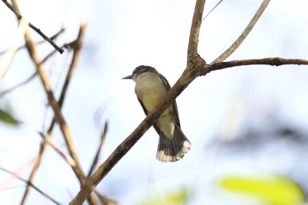 White-eyed vireo bird Vireo griseus with yellow sides perches on a tree branch in Naples, Florida