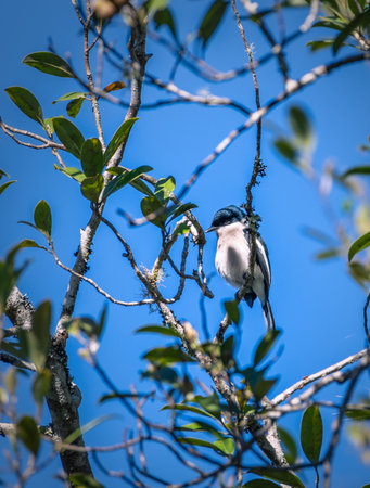 Generative AI : Cute birdSnowybrowed FlycatcherFicedula hyperythraMale rest on branch in nature