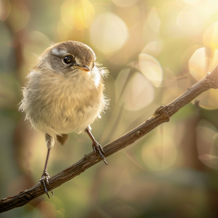Portrait of a little bird on a branch with bokeh background