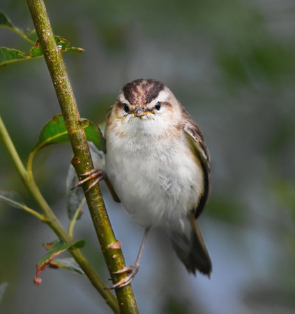 Warbler, isolated on pastel background, stock photographic style