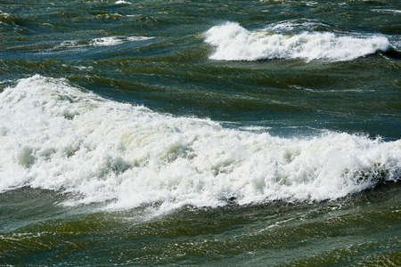 Beautiful raging seas with sea foam and waves. Background of turquoise waves.