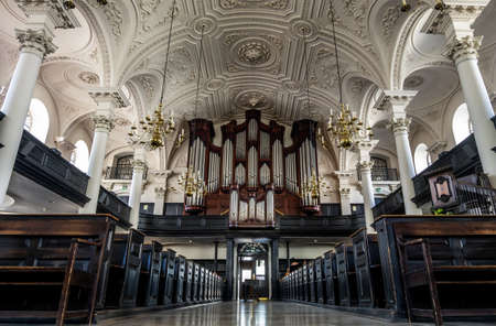 LONDON, UK - APR 19, 2019 : St Martin in the Field church interior at the north-east corner of Trafalgar Square.