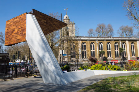 LONDON, UK - APRIL 19TH 2018: A view of the World War Two Bethnal Green Tube Disaster Memorial, also known as The Stairway to Heaven memorial in London, on 19th April 2018.
