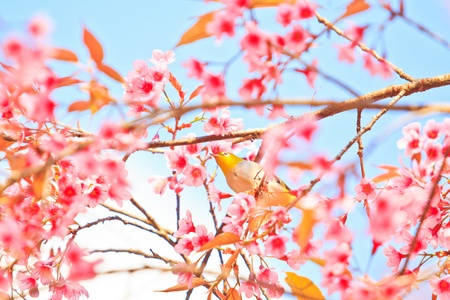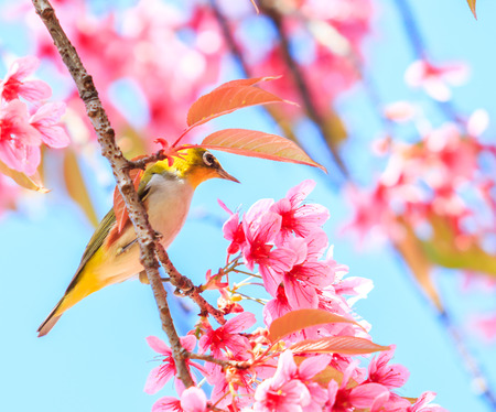 Bird on Cherry Blossom and sakura (white-eye Bird)
