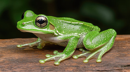 Green tree frog on a branch in the rainforest of Costa Rica