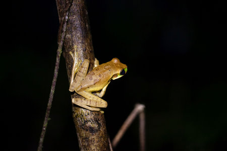tree forg golden color rainforest amphibian on branch background copy space