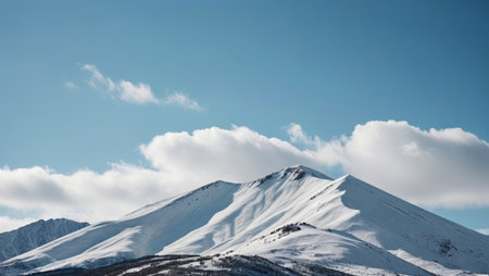 Majestic mountain landscape with a serene sky and snow-capped peaks under a blue atmosphere during daylight hours