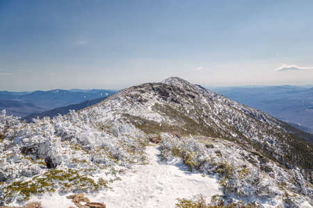 View to Mount Washington in New Hampshire from summit of Bretton woods ski area at early winter