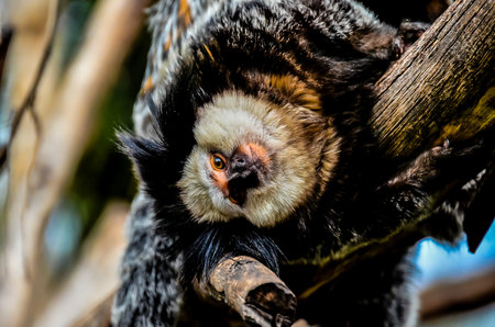Close-up portrait of White-headed Marmoset sitting in a tree