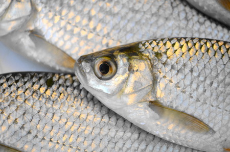 Fresh fish top view, Silver Barb fish on ice