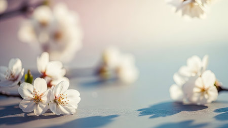 A beautiful branch of white cherry blossoms featuring delicate petals set against a soft blue background, perfect for spring-themed designs.