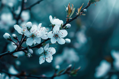 Delicate cherry blossoms display their beauty on a blooming branch.
