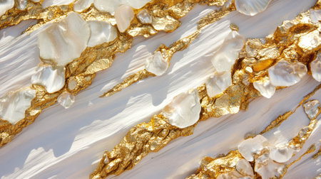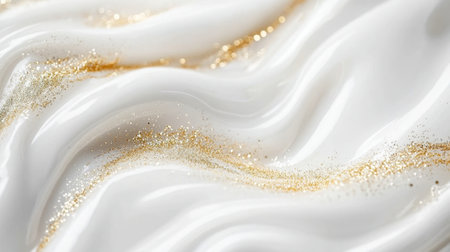 This image features a creamy white texture accentuated by golden shimmer, showcasing elegant waves that evoke luxury and sophistication, ideal for creative projects.