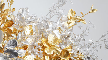 A stunning arrangement featuring gold and silver floral elements, creating a luxurious and modern aesthetic perfect for interior decoration and artistic projects.