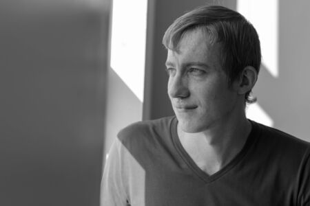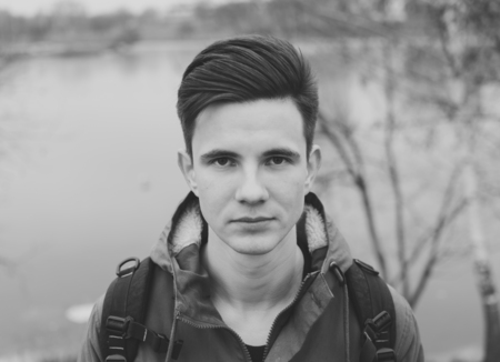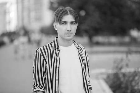 Portrait of a gay man - member of the LGBTQ community. Black and white photo. BW