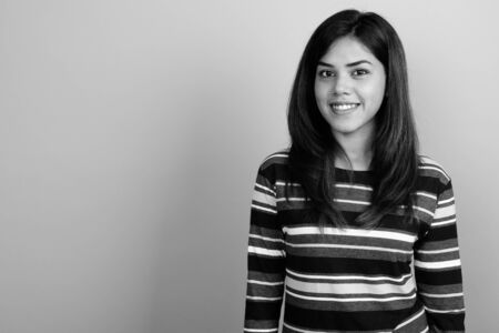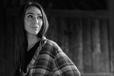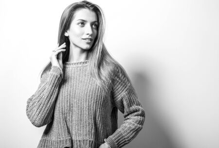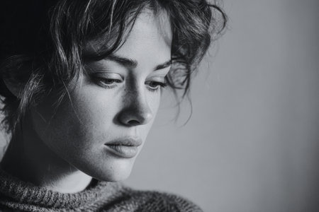 attractive woman on plein background shot in studio with soft lights with an interesting expression and dramatic lighting Black And White, b&w