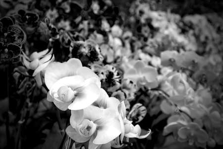 abstract black and white floral background, white flowers and soft focus, blurring and blurring of plant images, macro shooting