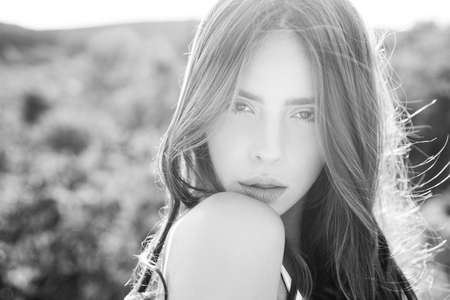 Spring natural beauty girl. Portrait of sensual woman outdoor.
