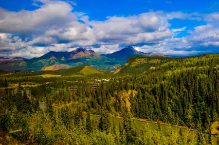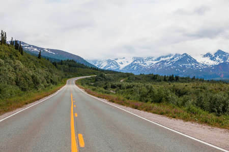 Scenic highway in Alaska, USA. Dramatic view clouds