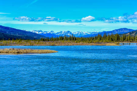 Winter mountain range towering over scenic wilderness landscape of Yukon Territory, Canada