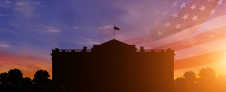 White House silhouette on sunset background.USA. American holiday concept.3d illustration