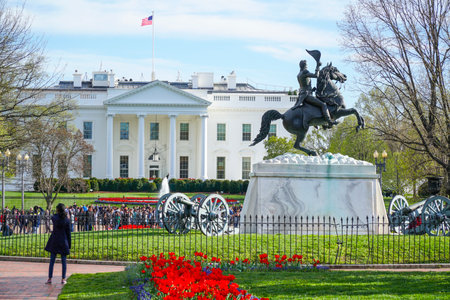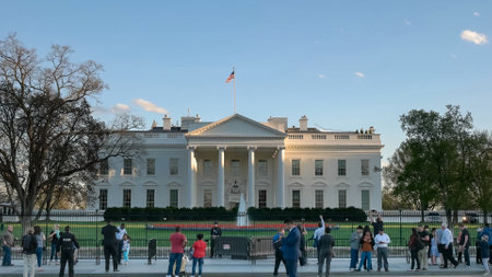 Front of The White House in Washington - home and office of the US President - WASHINGTON, USA - APRIL 8, 2017