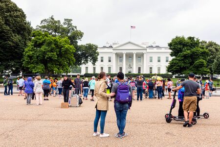 Washington DC, USA - June 9, 2019: The east side of the White House with a busy Lafayette Square in the foreground